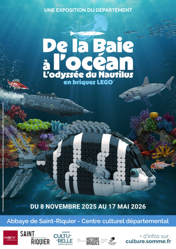 - Le Département propose à l’Abbaye de Saint-Riquier une exposition « De la baie à l’océan, l’odyssée du Nautilus en briques LEGO » (gratuit pour les enfants, 6€/4€ tarif plein/réduit, tous les détails sur leur site)