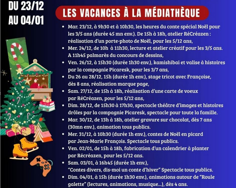 - la médiathèque du Crotoy a ouvert ses portes début décembre. Pendant les vacances de Noël, elle propose de nombreuses activités pour les petits et les grands. À noter : des cours d’informatique seront proposés à partir de début janvier.