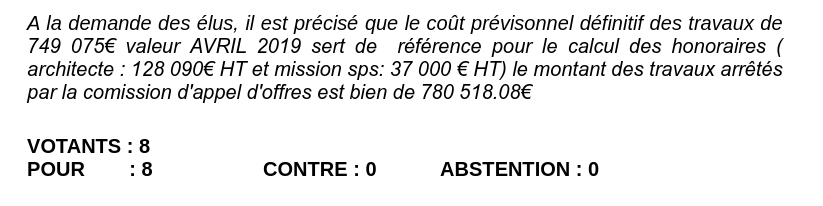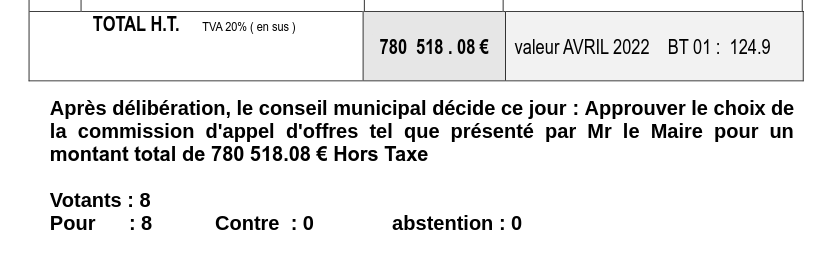 Pour conclure : dans leur tract de janvier 2026, ces conseillers indiquent que le coût des travaux était de 805 900€ HT. Pourtant, le PV du conseil municipal d’octobre 2022, signé par certains d’entre eux, donne un tout autre montant !